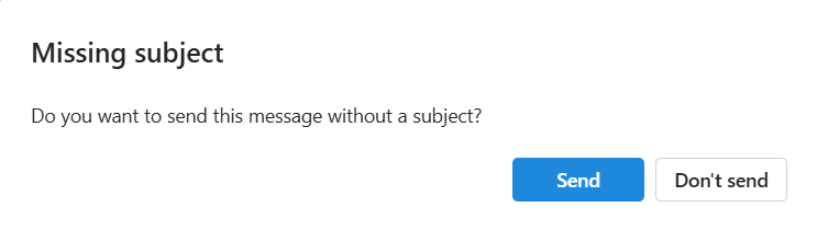 Note: If you attempt to send an email without specifying a subject, a pop-up will appear asking if you still want to send the email without a subject. To bypass this prompt, you can provide the input "ignore subject.