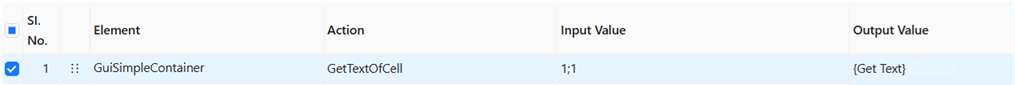 This is a pre-built action available under the **Captured Container Element** from the **SAP GUI Application**. The functionality of this action in Avo Assure is to fetch the text from a specific cell and save the result in the dynamic variable.&#x20;