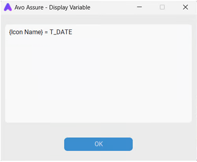 The **Get Icon Name** action does not require any value from the Input Value column. It fetches the icon name as **T\_DATE** from the captured element and stores it in the **{Icon Name}** variable.