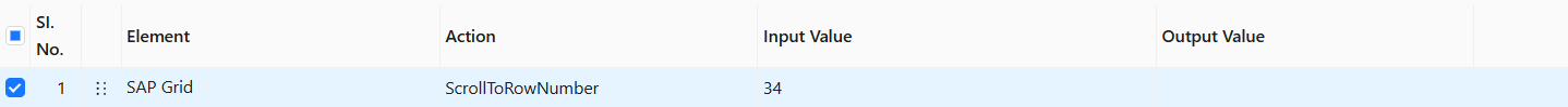 This is a pre-built action available under the Captured Grid Element from the SAP GUI Application. The functionality of this action in Avo Assure is to automatically scroll to a specific row in an SAP Grid.