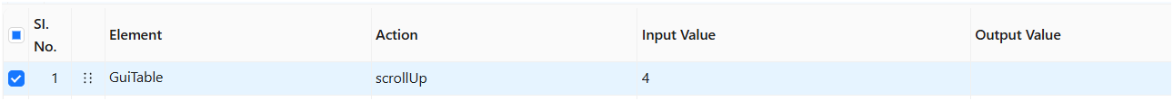 The **Scroll Up** action takes the value from the Input Value column **(e.g., 4)** and scrolls the captured SAP table upwards by the specified number of rows.&#x20;