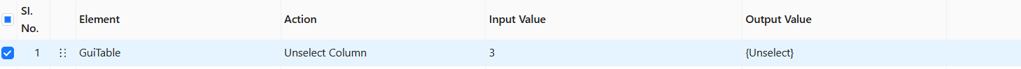 This is a pre-built action available under the **Captured Table Element** from **SAP GUI Application**. The functionality of this action in Avo Assure to unselect the column given in the input and save the status in dynamic variable.&#x20;