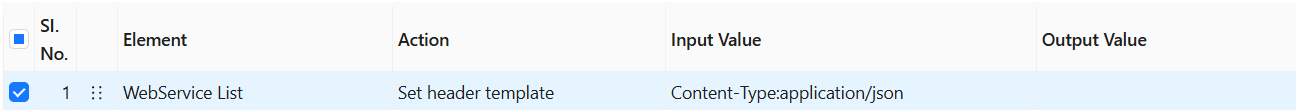 The **Set Header Template** action does not require any value from the Input Value column. It applies a predefined header template to the web service request.