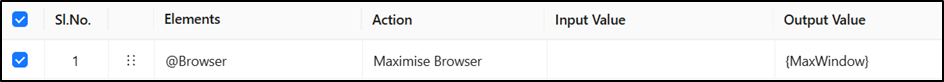 * The **Maximize Browser** action does not require any input value. It maximizes the browser window that is currently opened.