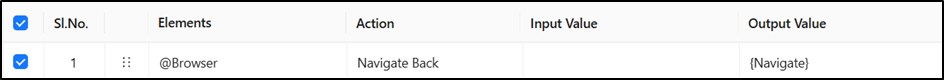 This is a pre-built Action located under the **@Browser Element**. The functionality of this Action in Avo Assure is to navigate back to the last visited page. The result of this Action is stored in a dynamic variable for further use during test execution.