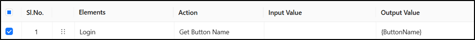 * This action does not required any input value in the **Input Value** column. It automatically identifies and retrieves the name of the target button from the application.