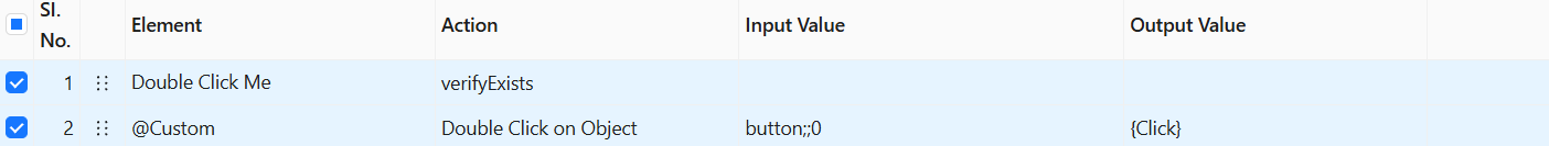 This pre-built Action is located under the @Custom Element. The functionality of this action in Avo Assure to perform a double-click operation on the element specified in the Input Value, and save the result in dynamic variable.