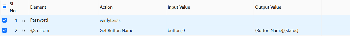 This is a pre-built Action located under the **Custom** **element.** The functionality of this action in Avo Assure to fetch the name of the button specified in the input value and save the result in dynamic variable.