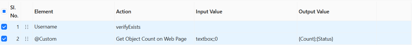 This is a pre-built Action located under the Custom Element. The functionality of this action in Avo Assure to find the number of occurrences of the object on the web page, and the result is stored in a dynamic variable.