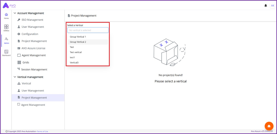 ### Step by step process to create project in vertical: