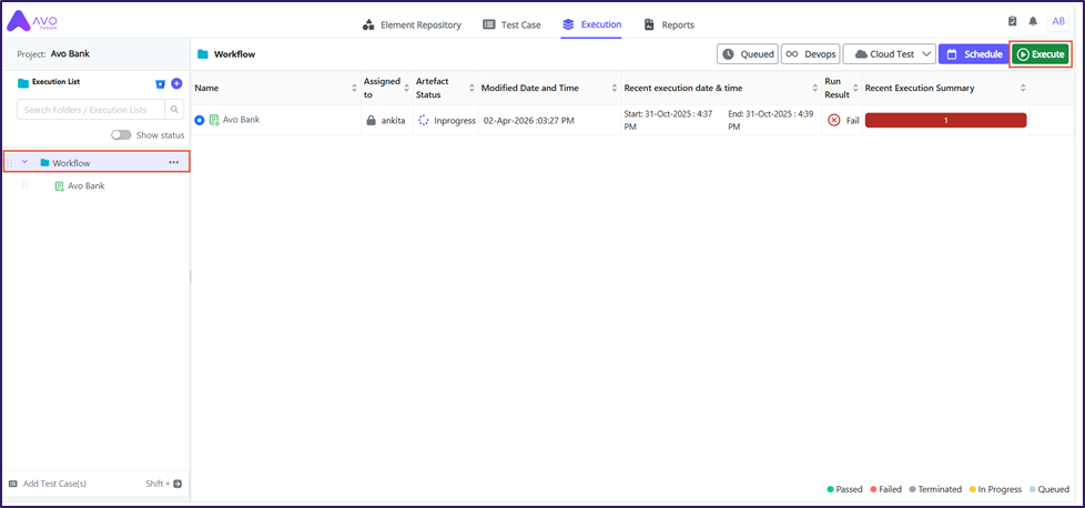 9. Select **Execute** to execute the Execution List.